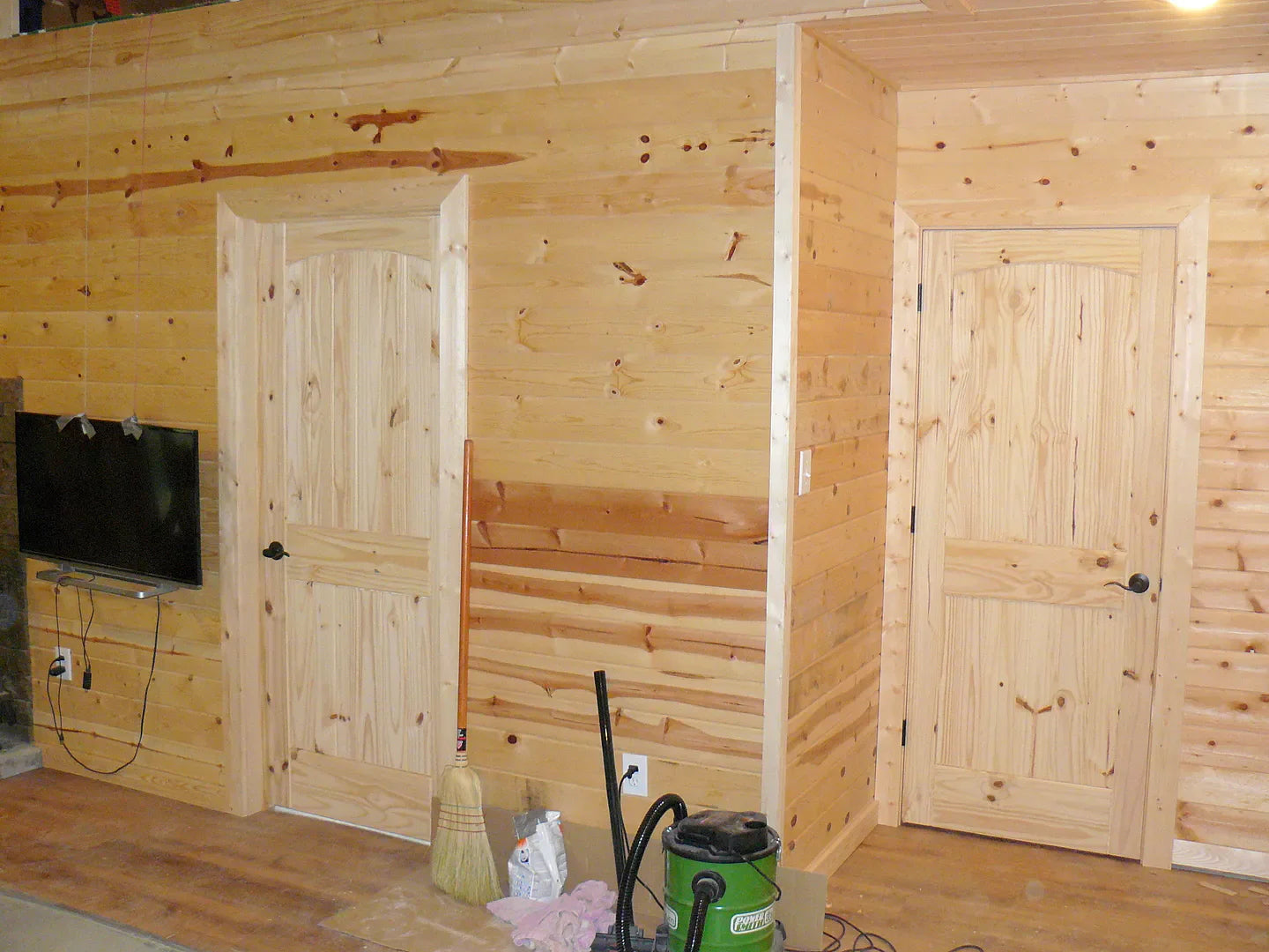 2 Panel Arch Top V-Groove Knotty Pine Interior Door | Prehung | 2-3/8 Backset