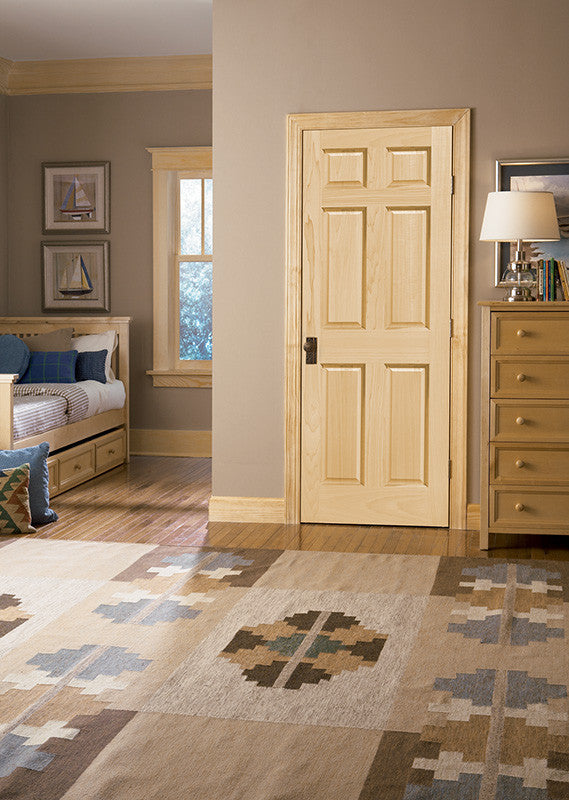 This door features a 6-panel double hip design on 1 3/8" thick pine. The double hip on the panel adds just a touch more detail to the overall design. The door comes in a variety of heights and widths to suit most any space in your home. The clear pine material is perfect for either a rich stain or paint finish.