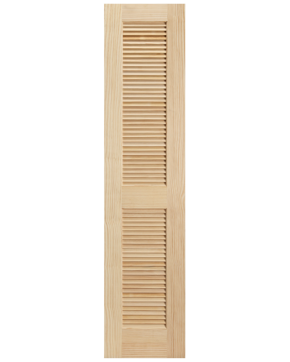 This door features a 2-panel design on 1 3/8" thick pine. Both the bottom and top panels are louvered. The door comes in a variety of heights and widths to suit most any space in your home. The clear pine material is perfect for a stain finish.